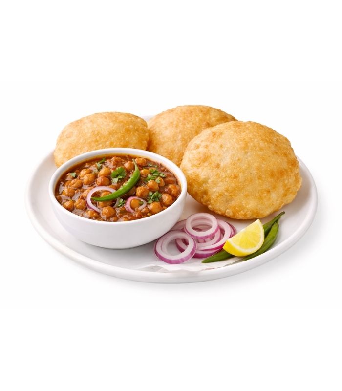 A hearty North Indian meal featuring soft, deep-fried puris paired with slow-cooked chickpeas in a rich, aromatic gravy. Comforting, filling, and full of traditional flavors.