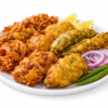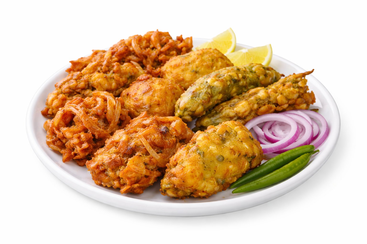 A mix of seasonal vegetables coated in spiced besan batter and deep fried. These pakodas are crunchy, aromatic, and ideal as a sharing appetizer or evening snack.