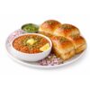 Buttery pav served with spiced vegetable mash.