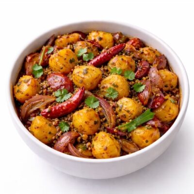 Potatoes and onions cooked with Indian spices.